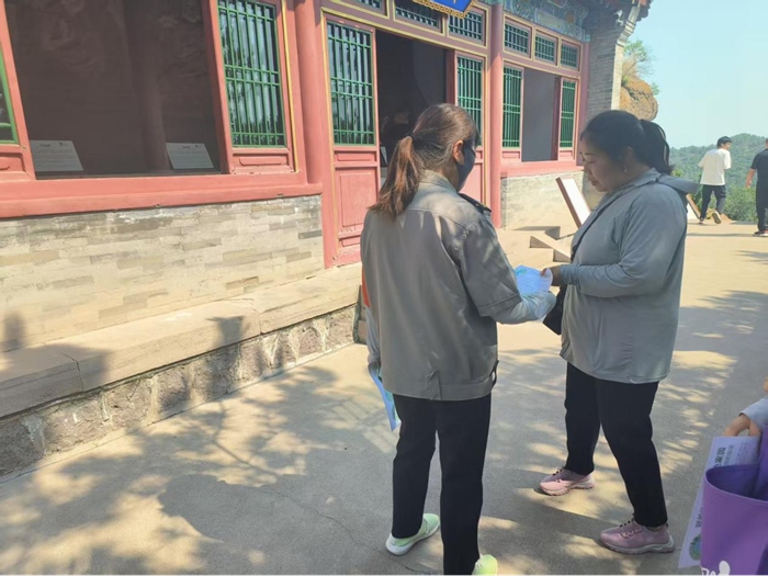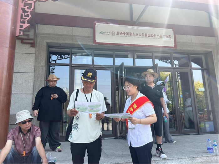 为深入贯彻落实生态文明建设理念,增强游客环保意识。承德市磬锤峰国家森林公园管理中心于2025年6月24日在宝山寺、宝山寺休息亭、游客中心三个点位开展“呵护地球共筑绿色家园--让环保成为生活的勋章”为主题的宣传活动。采用现场为游客讲解生态保护相关知识及发放生态保护宣传单的形式,向广大游客及市民宣传生态保护相关知识,营造全社会生态保护的良好氛围。活动期间管理中心参加人数8人,共计发放宣传资料100余份,解答市民及游客咨询10余次,通过此次宣传活动,使广大游客深入了解保护生态环境的重要性,切实增强了生态保护意识。